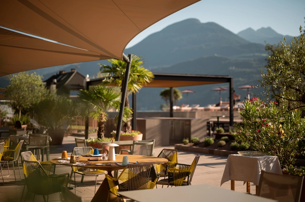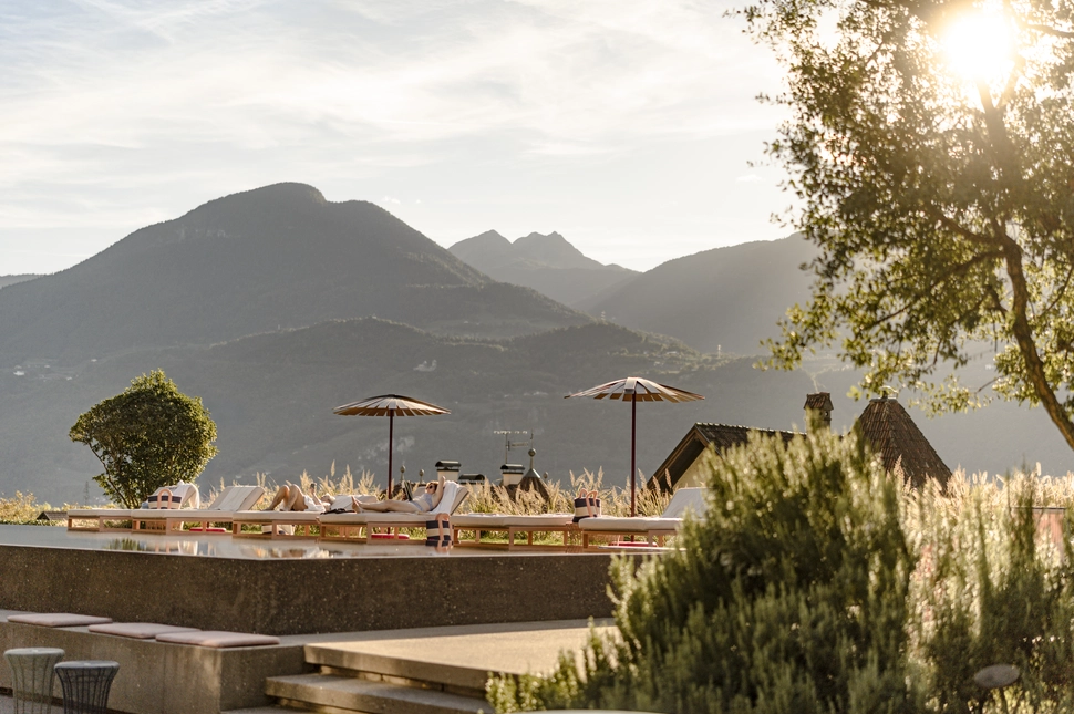 Die Schwestern Martina, Priska und Anna Ganthaler führen mit bunter Leichtigkeit das Haus, das 1952 der Opa erbaut hat. Südtiroler Tradition, gelebte Gastfreundschaft und moderne Architektur kommen hier zusammen. Im Boutique Hotel Muchele wirkt alles wie ein lässiges, buntes Sommerwohnzimmer, die raffiniert bepflanzte Gartenterrasse lässt das Drinnen mit dem Draußen verschmelzen. Der Sole Infinity-Pool aus Südtiroler Porphyr ist der neue Superstar. Hier kraulen Frühschwimmer 18 Meter lang den Bergen im kühlen Nass entgegen. Wellness-Freunde dürfen sich auf einen beheizten Innen- und Außenpool, drei großzügige Saunen und einen Ruheraum mit Gipfelblick freuen. Ein absoluter Gourmet-Geheimtipp ist der Platz am „Kuchltisch“. Mitten in der neuen Küche genießen Gäste ein exklusives Überraschungsmenü. Muchele Urlaub tut der Seele gut. Wer sich nach Lebensfreude, Design, Wein und unbeschwertem Genuss sehnt, ist hier Zuhause.
